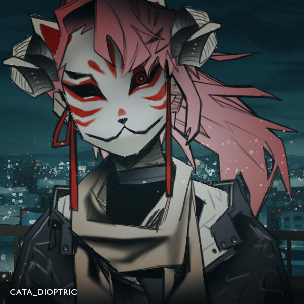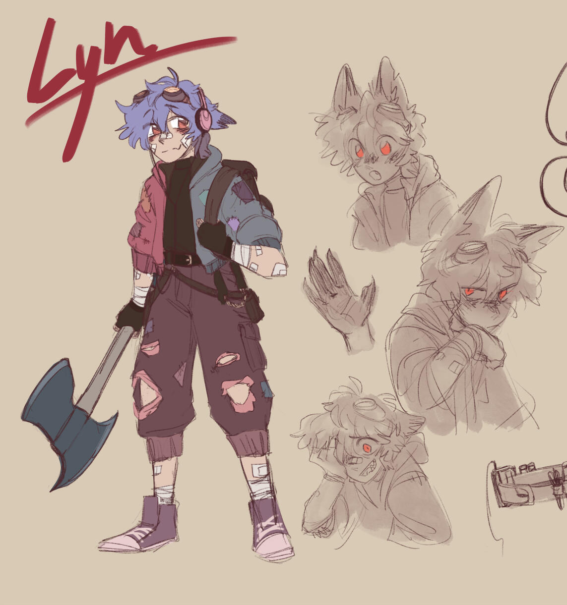 01. Lyn is 6'5". He's very toll.02. They have two red horns hidden underneath all the hair and goggles.03. Outside of the obvious fox features of ears and tail, Lyn has other ones like markings on the face, hands and feet being tinted like ink.04. Lyn's diet consists of a lot of meat, sometimes berries or other red colored foods.05. While not the easiest to wear, Lyn loves listening to music, it calms their nerves.